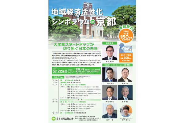 日本政策金融公庫(日本公庫)は、「地域経済活性化シンポジウム in 京都」を5月22日、京都市左京区の京都大学国際科学イノベーション棟「HORIBAシンポジウムホール」で開催する。
