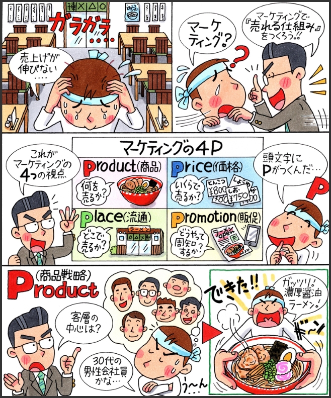 今回のマンガでわかるシリーズでは、この「マーケティングの4P」について、ご説明したいと思います。