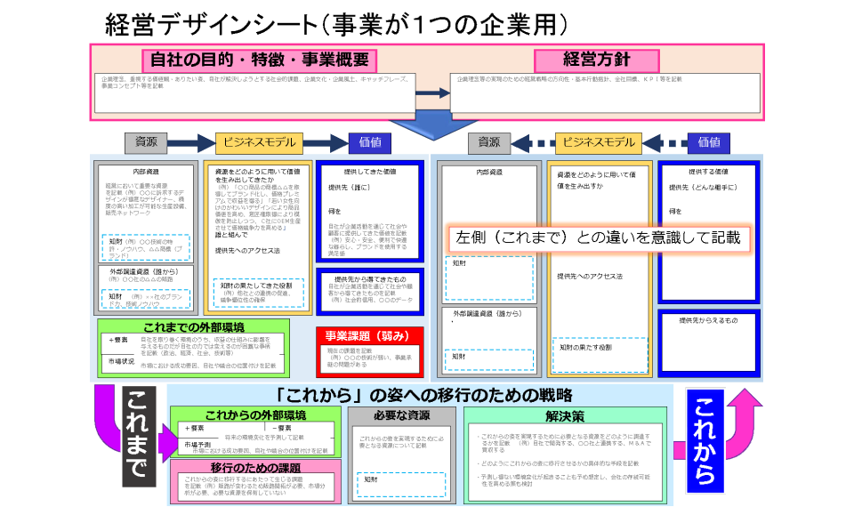 このような「これからの価値を生み出すしくみ」を描くためのツールが、内閣府が提供する「経営デザインシート」です。
