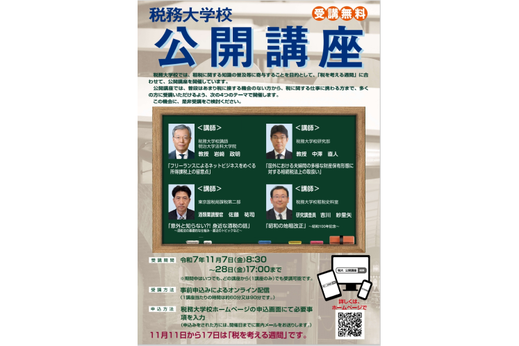 フリーランスの所得税もテーマに「税務大学校公開講座」:国税庁