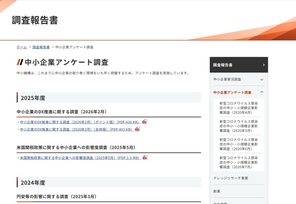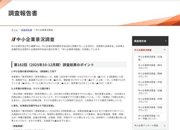 中小企業景況レポート、中小企業関連調査・レポート