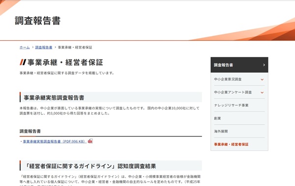 事業承継・経営者保証に関する調査データを掲載しています。