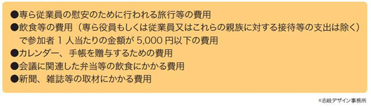 なお、上述のいわゆる「5,000円基準」のなかに「専ら役員もしくは従業員またはこれらの親族に対する接待等の支出は除く」となっていますので、「従業員等」の飲食代には「5,000円基準」は適用されません。