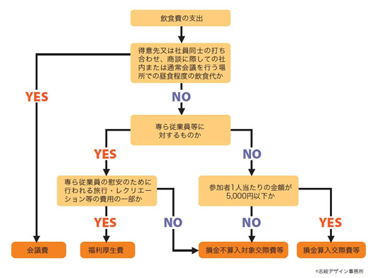 「会議費」か「交際費等」かの区分は、5,000円基準の前段階で判断し、「交際費等」と判断されたものをさらに5,000円基準により判断し、「交際費等の損金不算入」の対象より除外することになります。