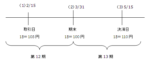 平成29年2月15日(為替レート:1ドル=105円)に100ドルの商品を仕入れた(第12期)