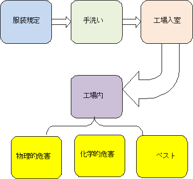 化学的危害は一度発生すると事故の範囲が広がる恐れがあります。よって厳重な管理が必要となってきます。工場内で使用する化学的薬品は置き場所を明確に区分する必要があります。工場内に殺虫剤は置かないようにします。