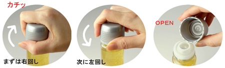この便利なヒネルキャップで肝心なことは、最初にキャップをあけるときに右に回してもらうことにある。