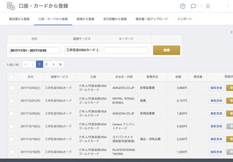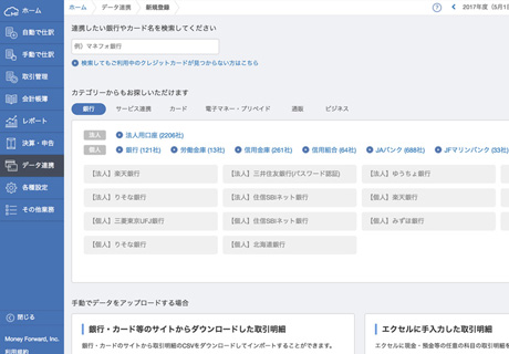 銀行口座やクレジットカードなど金融機関のデータを取り込めます