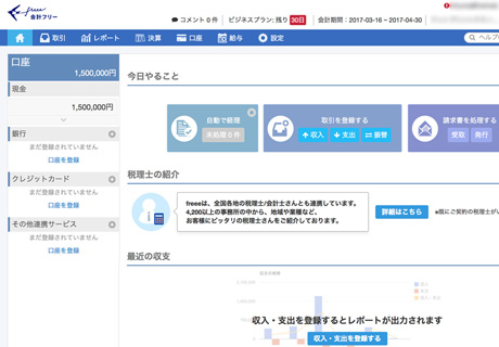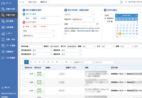 「MFクラウド会計」の画面