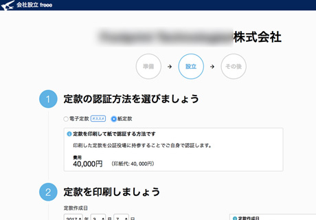 「会社設立freee(開業freee)」(会社設立、事業開始手続きのサポート)