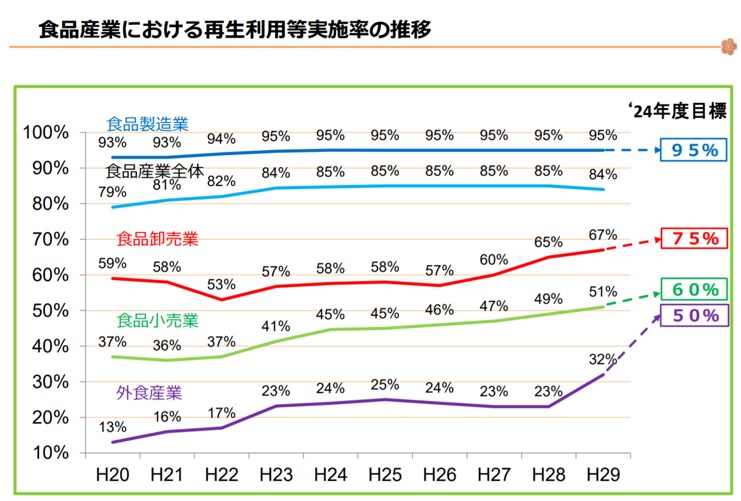 「食品循環資源の再生利用等を実施すべき量に関する実施率の目標」等の見直しや事業系食品ロス削減目標の設定、食品リサイクル法に基づく施策を推進するための資料として活用されます。