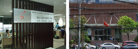 ベトナム支社SIVCREATES VN Co., Ltd.のエントランス(左)と入居ビル外観(右)