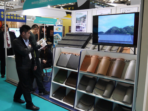 上海での展示会「中国国際建築装飾展覧会EXPO BUILD CHINA」で紹介された同社の瓦製品の数々