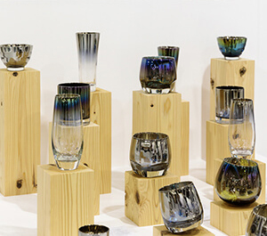 その後も、自社ブランドの構築を目指してroomsや素材展、Magicなど多様なカテゴリーの展示会へ出展し、多様な形状や素材にチタンコーディングを施したプロトタイプを使ってプレゼンテーションを行う。そこで特に商品化の要望が高かったグラスを、ライフスタイルの細部まで確立されたペルソナを想定してブランディングし、高級路線の〈PROGRESS〉として開発。国内展示会への出展などを通して、発売からわずか3年ほどで順調に販路を拡大し、実に売上の7、8割を占めるほど急速な成長を遂げた。