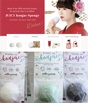 「もしかすると、こんにゃくを<食べる>概念がないから海外からの注文が多いのかもしれません」と語るのは代表取締役。「だからこそ、海外ではこんにゃくを<自然派スキンケア用品>として根付かせたいです」。一方で、このスポンジを販売するのはとても難しい一面もあるようだ。「フランスではたまたま多くの方にご利用いただくことになりましたが、とはいえ、この商品に興味を持ってくれるお客様がこの地域に多い、という地域性がないので地域戦略が取れないのです。興味を持ってくださる層にいかにアプローチしていくか、というのがポイントです」。実際、こちらからセールスをかけるより、小売店から販売を持ち掛けられたケースの方が取引は続いているという。「今後も地域を限定せず幅広くアプローチができるように、Webサイトの改修を含め検討します」。