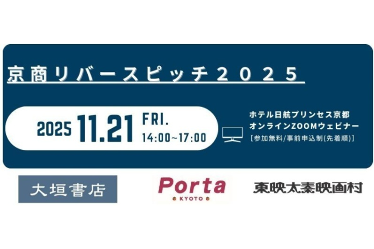 京都商工会議所は、企業がニーズや協業テーマを提案する「京商リバースピッチ2025」を11月21日にホテル日航プリンセス京都(京都市下京区)で開催する(オンライン同時開催)。