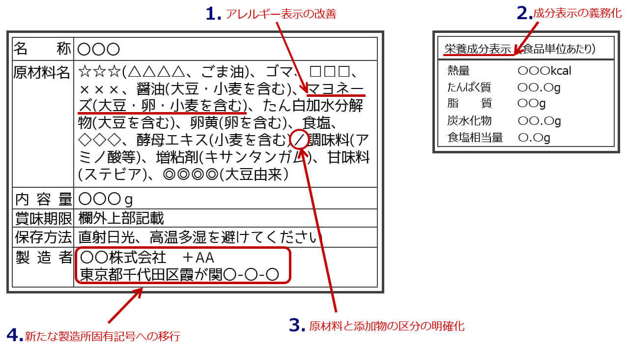 *2 特定加工食品の拡大表記……表記に特定加工食品の名称を含むことにより、アレルゲンを含むことが予測できると考えられてきた表記(例:からしマヨネーズ←卵を含む、ロールパン←小麦を含む)